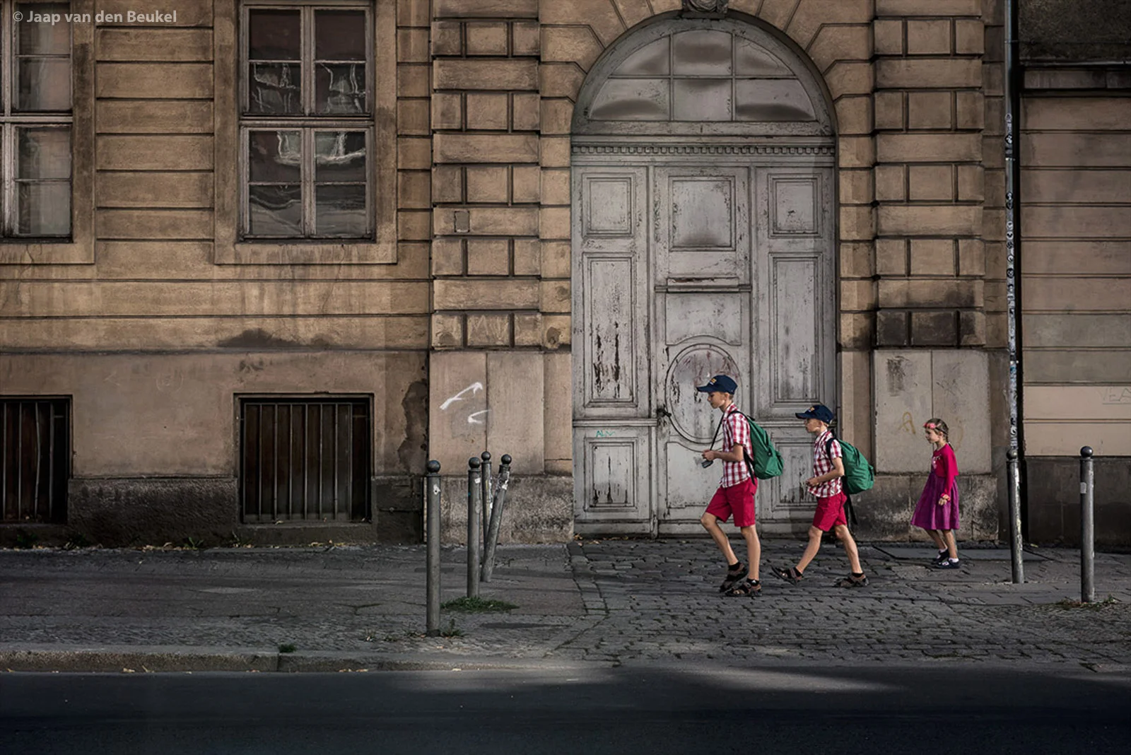 There is no noise of street life or traffic. The streets are abandoned. In reality, there was traffic, or people walking through the picture. It sometimes took a lot of patience to isolate one person against the backdrop. At other locations, on the other hand, it sometimes took ages before something happened in my staged ‘frame’. Sometimes I would ask someone to model for me, like Alistan holding his chair.
