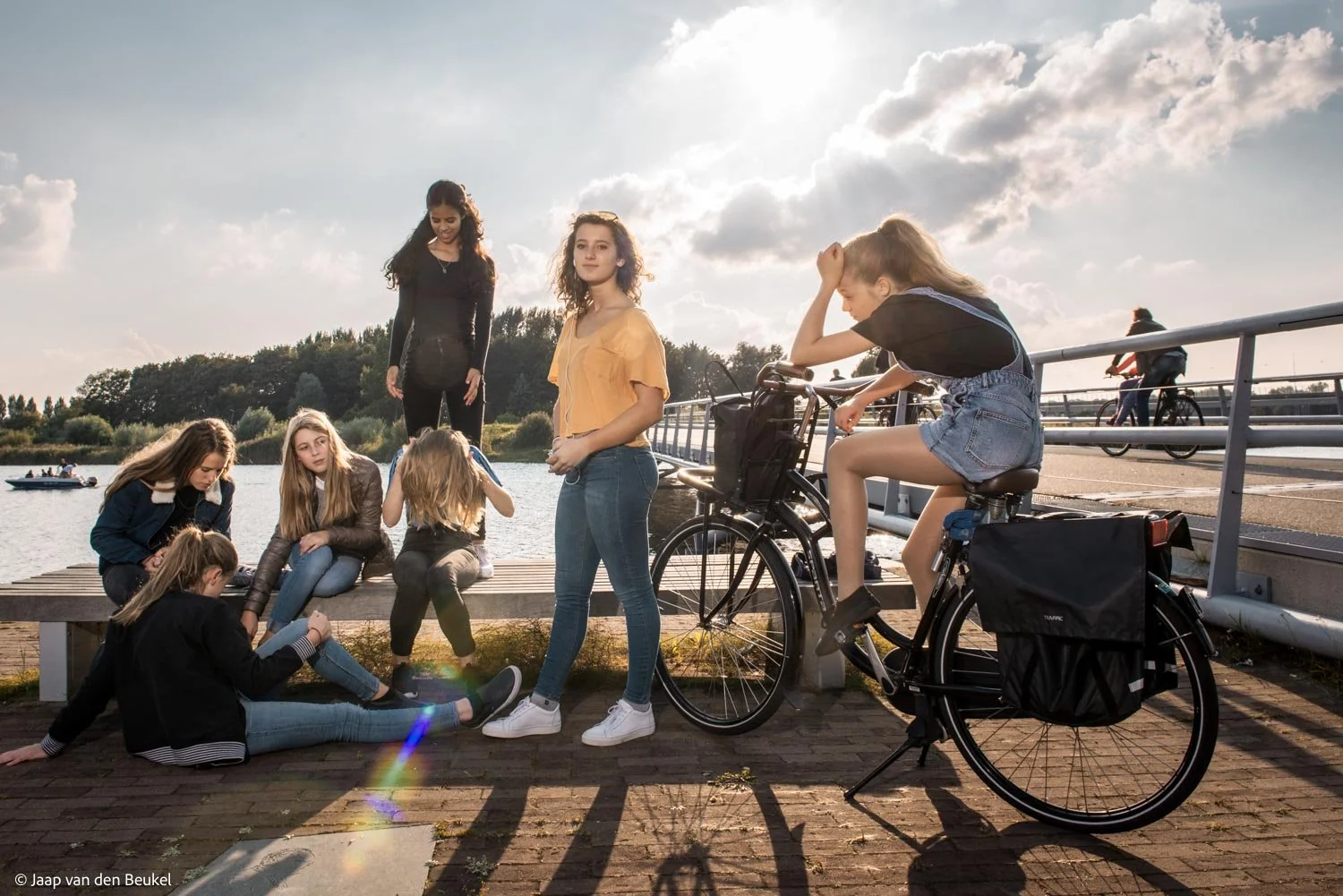 Op basis van dit plan werd mij de foto opdracht van het Stadsarchief en Amsterdams Fonds voor de Kunst 2016 verstrekt. Verschillende locaties op IJburg vormen - elk ongeveer een uur lang - het decor van diverse groepen jongeren. De locaties zijn van tevoren zorgvuldig gescout. In elke groep staat één hoofdpersoon centraal. Op deze gekadreerde plekken komen gedurende dit uur zijn of haar vrienden langs met hun scooters, fietsen, skateboards et cetera. Via school of social media zijn ze geïnstrueerd om op dat tijdstip naar deze setting te komen. Als fotograaf maak ik vooral contact met de hoofdpersoon en laat ik zijn/haar vrienden hun gang gaan. Mijn hoofdpersoon is de spil. Op hem of haar ligt het accent, door middel van licht en plaatsing - apart van de groep, vooraan, achteraan, etc. Het zijn locaties waar je op het eerste gezicht niet veel mensen zou verwachten. Dit enigszins surrealistisch effect zoek ik bewust op als voorafschaduwing van de groei van de jongeren in de wijk die de komende jaren pas echt gaat spelen.