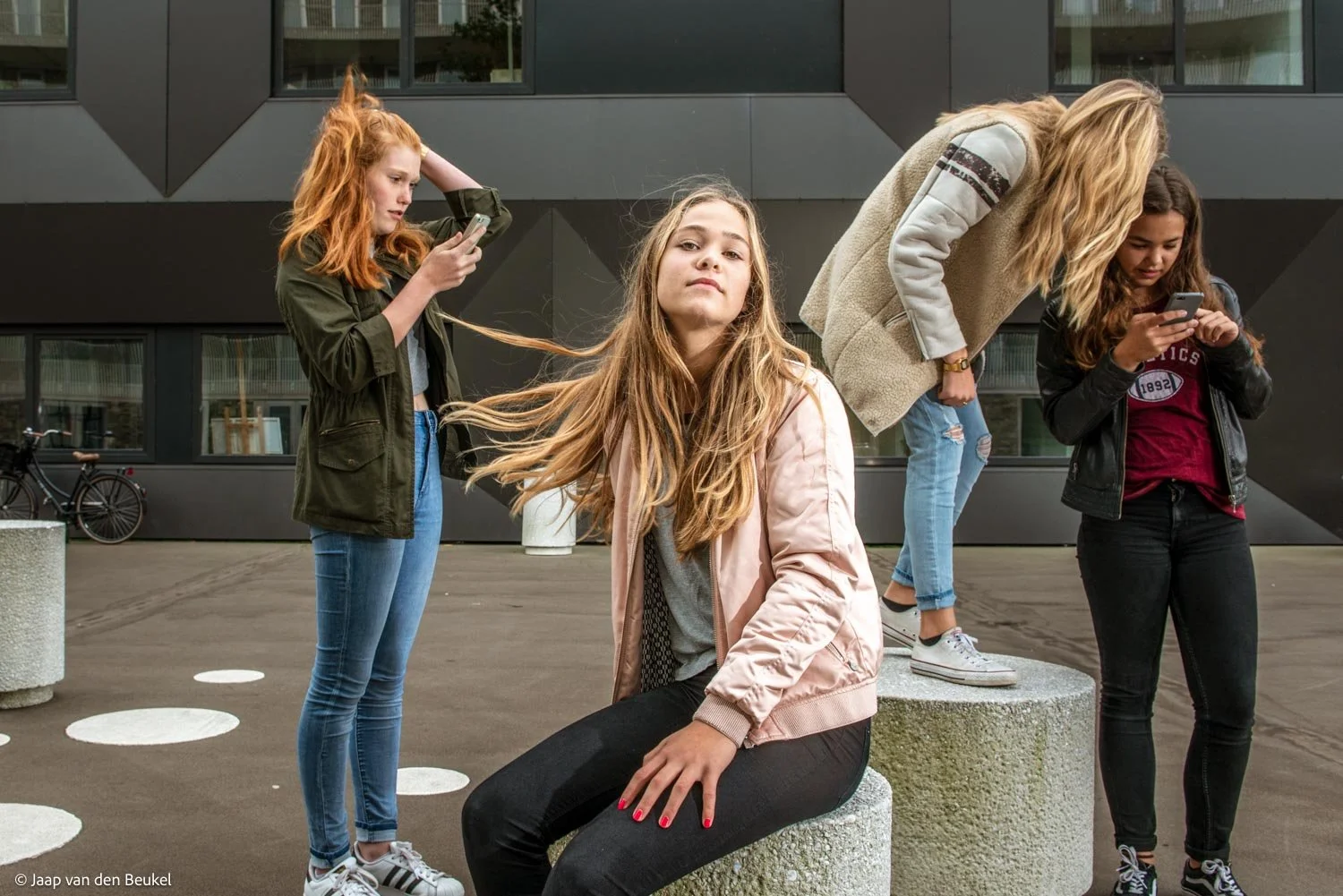 “De onzekere leeftijdsfase van deze groeiende groep jongeren tegen de strakke en gestructureerde achtergrond van de geplande woonwijk fascineerde mij destijds als fotograaf en bewoner van IJburg.” De Amsterdamse wijk IJburg bestaat uit diverse deeleilanden met elk zijn eigen sfeer en bebouwing en met elk zijn eigen jongeren. Het doel van deze serie is om een beeld te geven van de explosief groeiende groep jongeren tussen 13 en 19 jaar. Voor allen geldt dat ze op deze leeftijd nog op zoek zijn naar hun eigen ‘bouwtekening’ op het juist van te voren zo uitgekiend en berekend gebouwde IJburg.